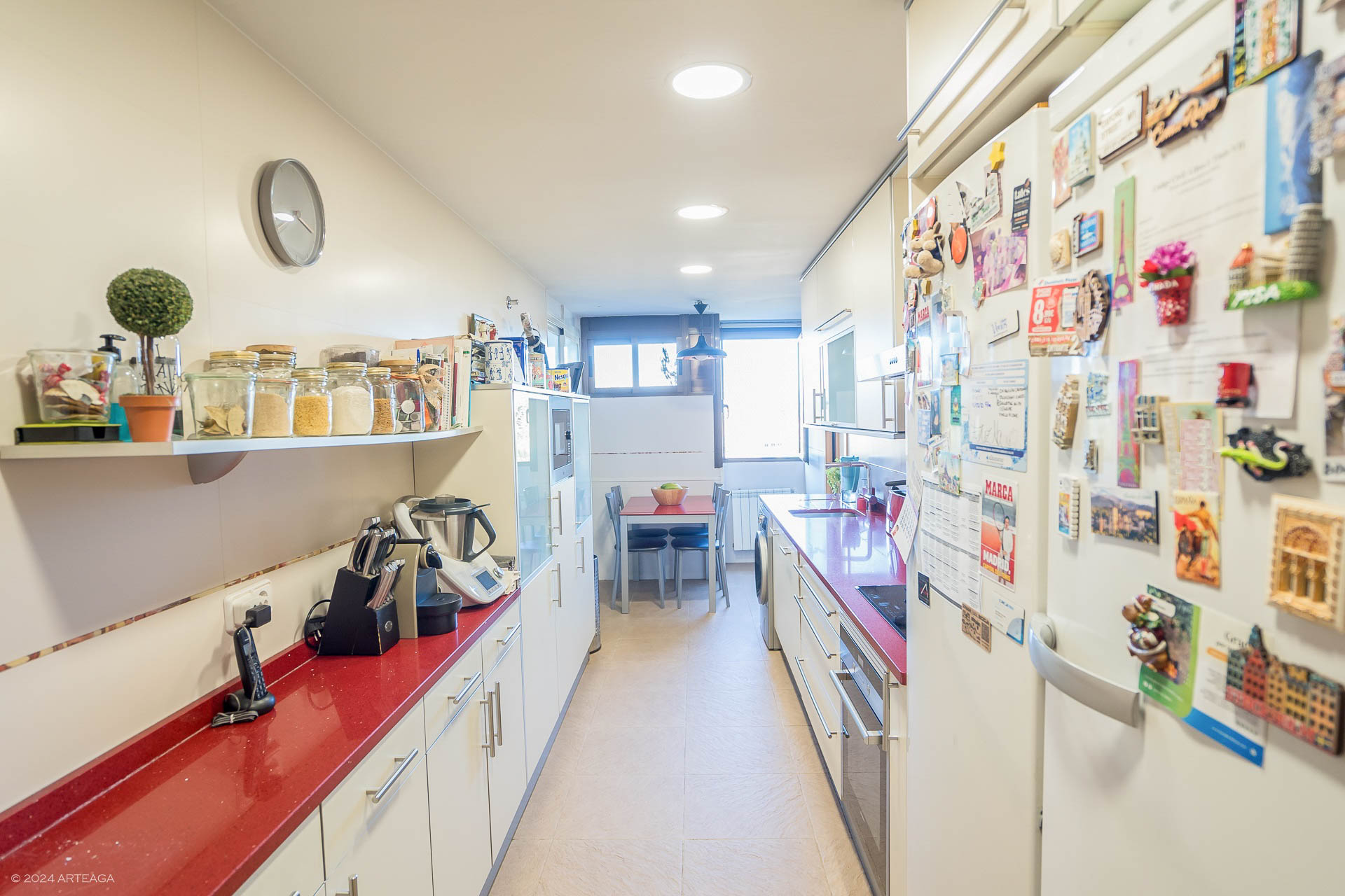 Cocina con muebles altos y bajos de gran capacidad y tendedero.