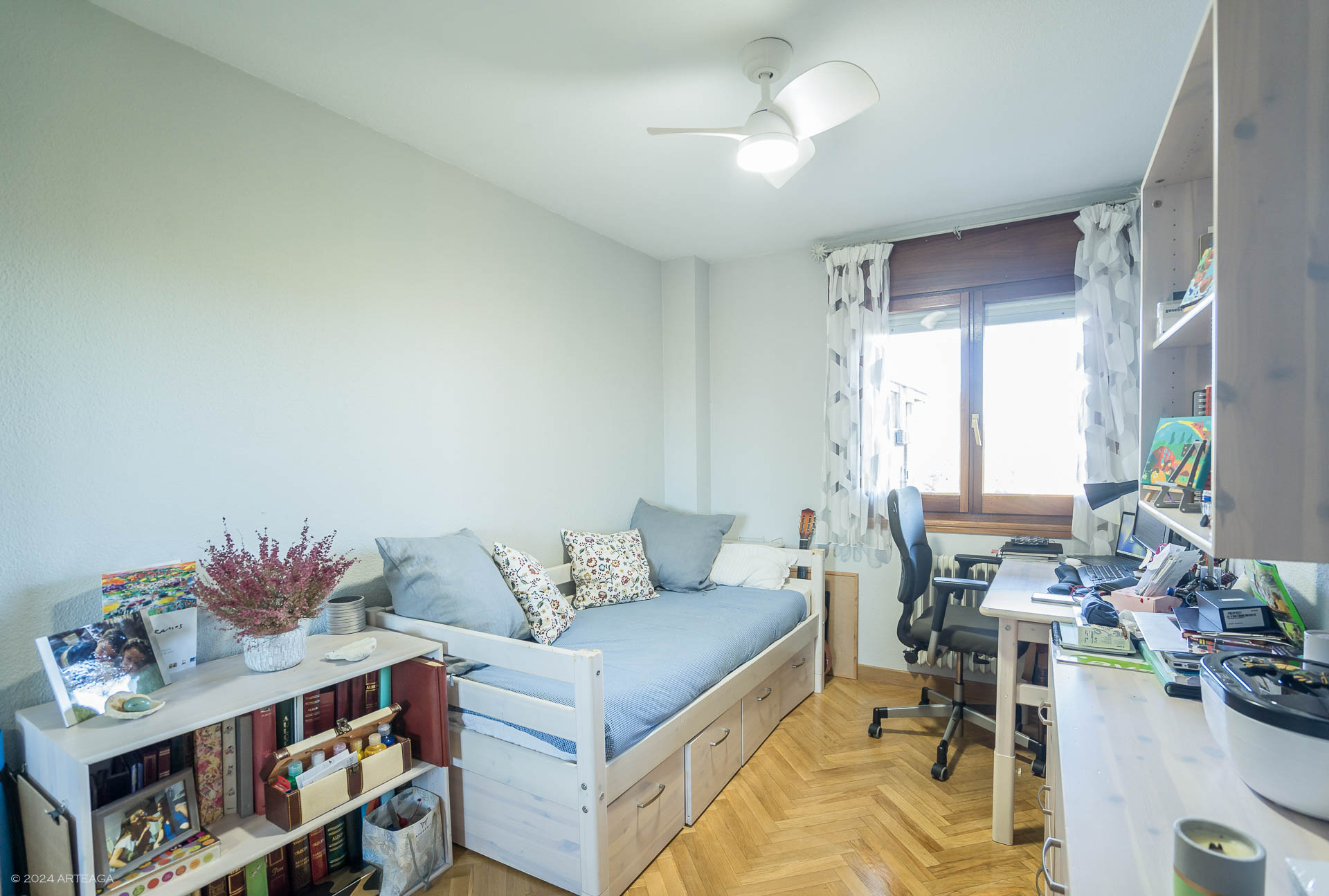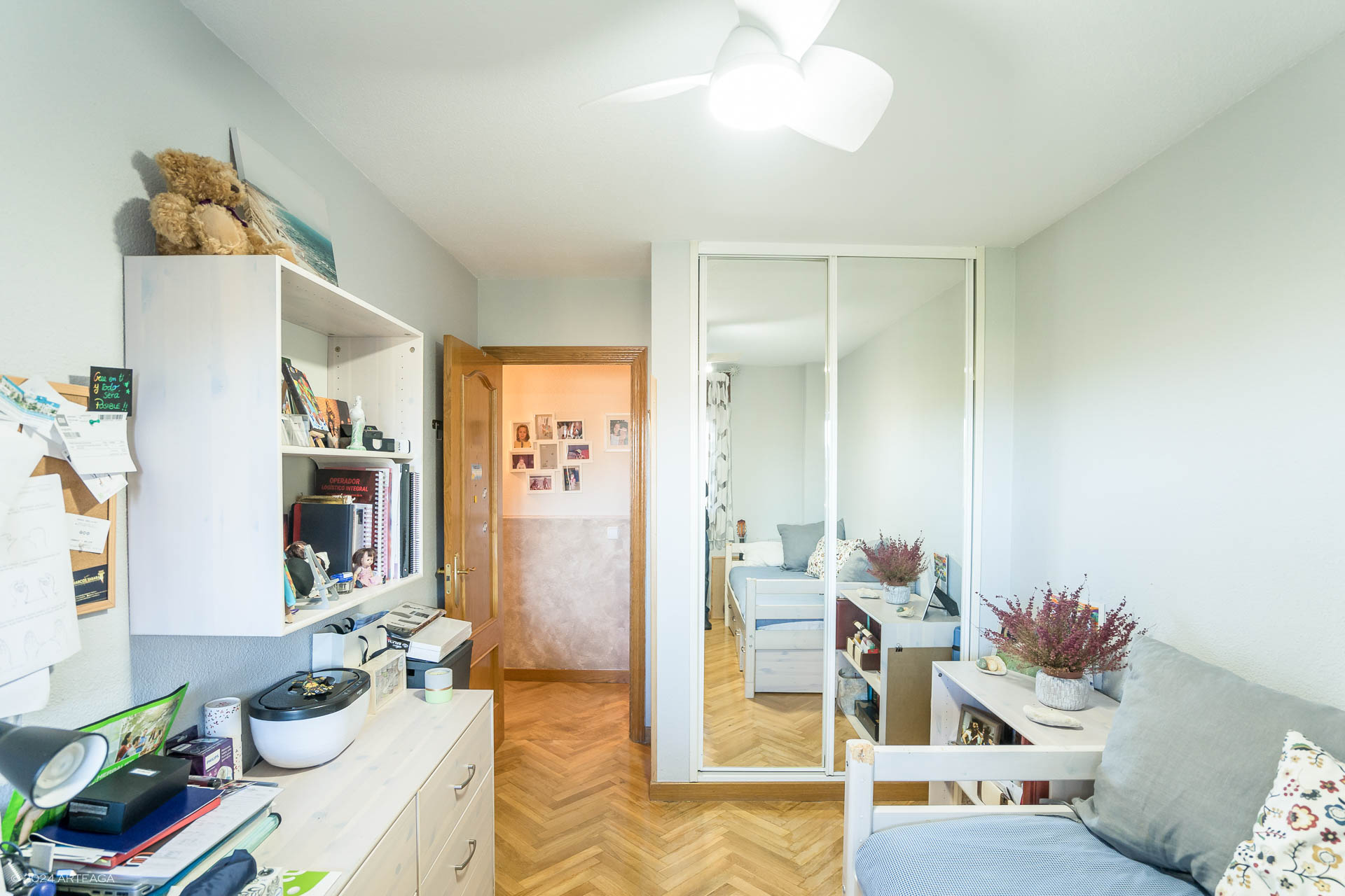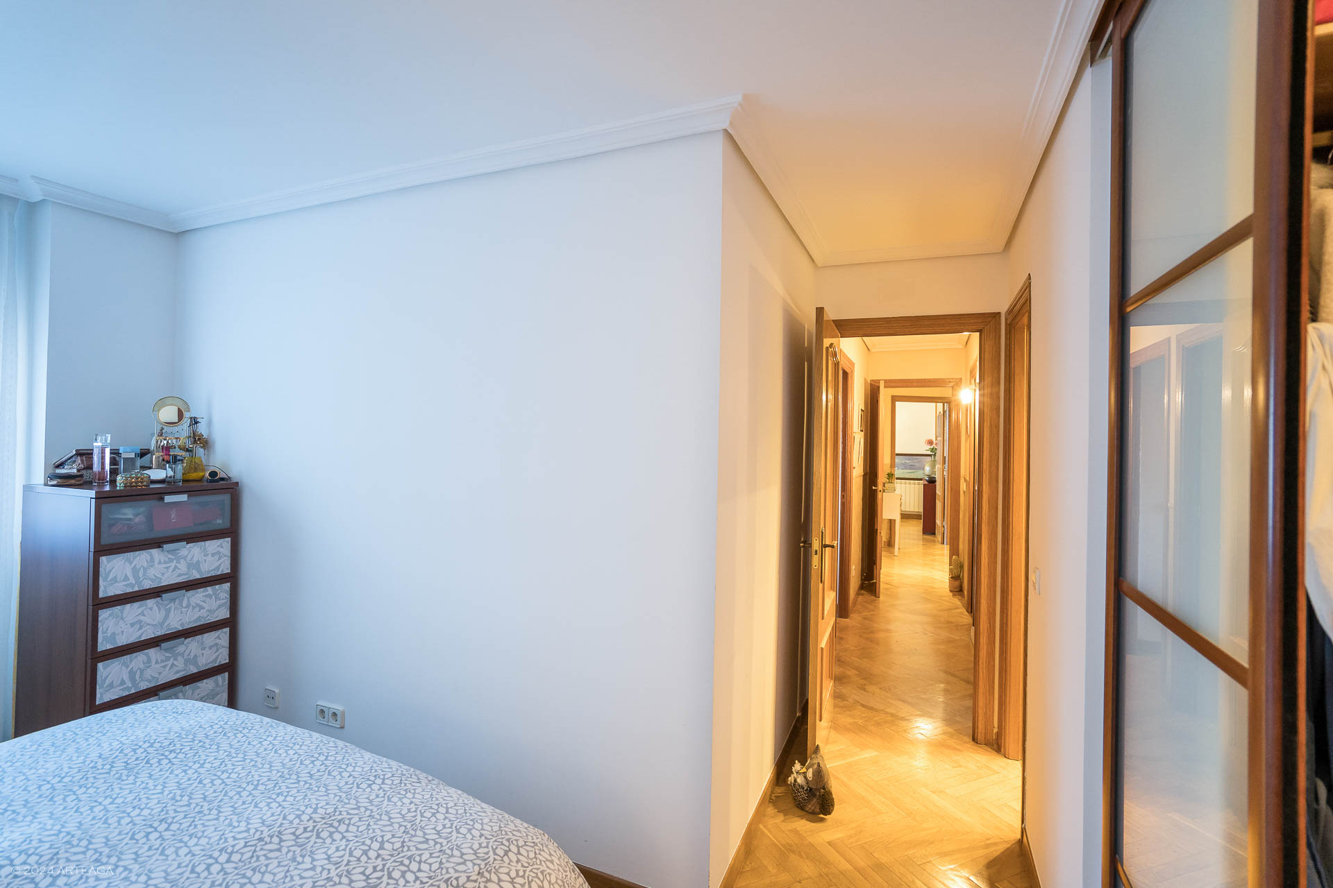 Volviendo al hall nos lleva a la zona de descanso donde se encuentran 3 habitaciones y dos baños completos, la habitación principal con baño en suite y amplio armario vestidor, las habitaciones secundarias cuentan con armario empotrado.