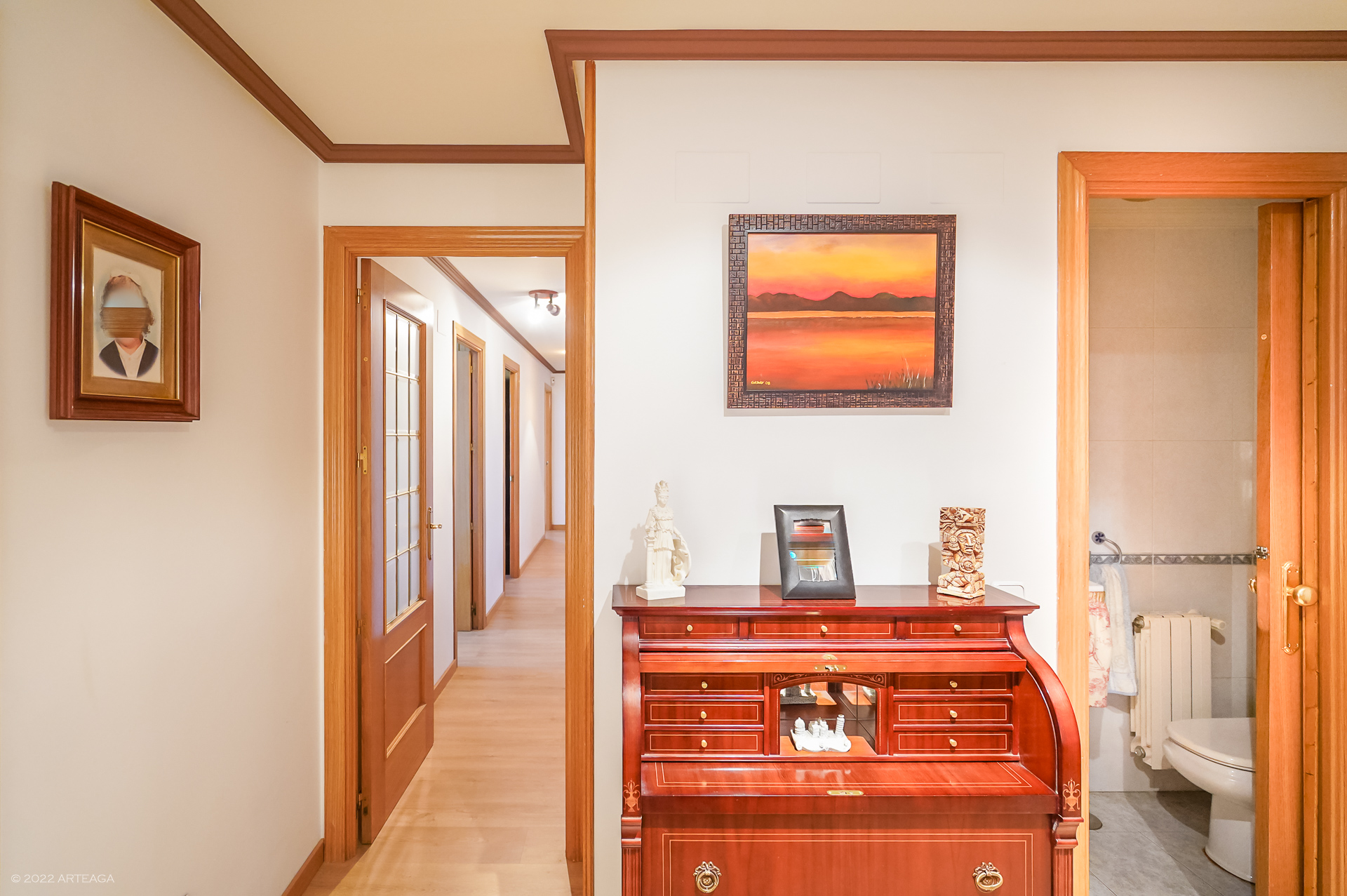 En el Hall de entrada tenemos un baño de visitas con armario empotrado.
